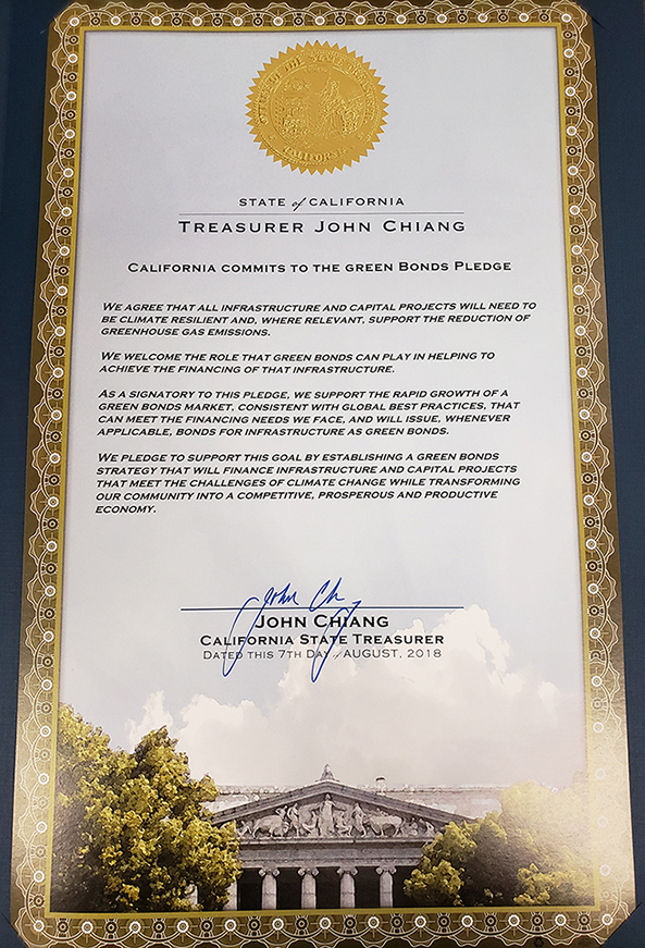 This Pledge commits the world’s 5th largest economy to using green bonds to efficiently raise billions of dollars in new and affordable capital to build climate-friendly infrastructure. It’s time our major infrastructure projects align with climate realities, so when we build, we must build green!