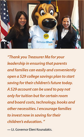 - Facilitated the opening of more than 13,500 new ScholarShare 529 college savings accounts and recorded nearly $410 million in new contributions. Also distributed more than $184 million to families to pay for qualified higher education expenses. More than $9.35 billion has been invested by families in more than 325,000 ScholarShare 529 accounts.